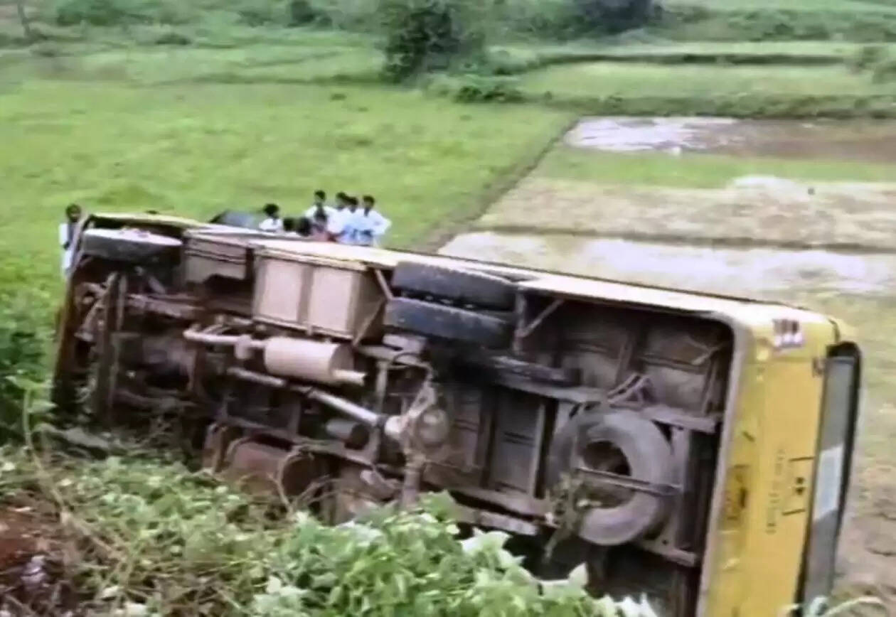 Dungarpur: प्राइवेट स्कूल की बस खेतो में पलटी, 2 बच्चे घायल