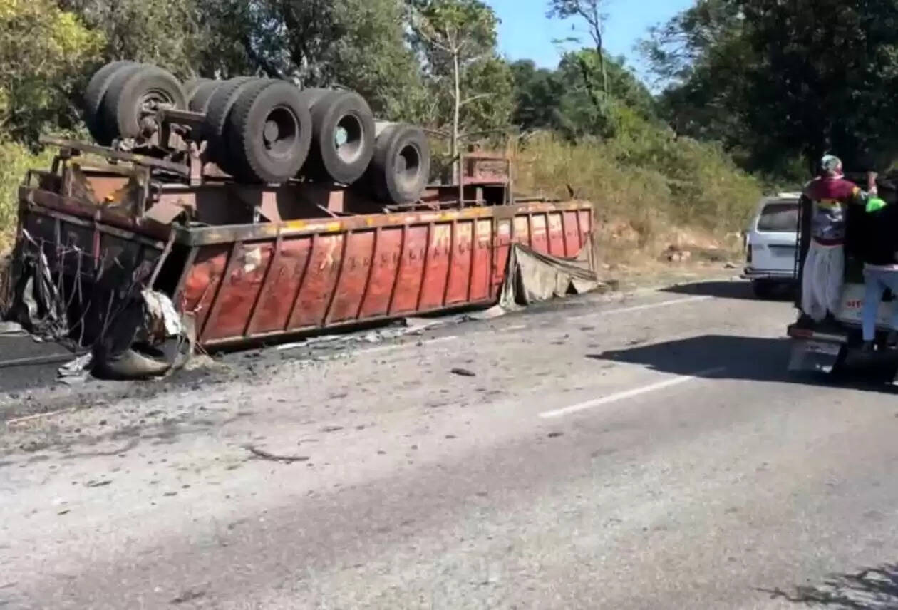 उदयपुर 9 जनवरी 2025। गोगुंदा पिंडवाड़ा हाईवे पर ओबरा के समीप एक हादसा हो गया जिसमे कोयले से भरे ट्रेलर की ट्राली हाईवे किनारे पलट गई। आगे चल रहे कार चालक के अचानक ब्रेक लगाने के चलते हादसा हुआ।