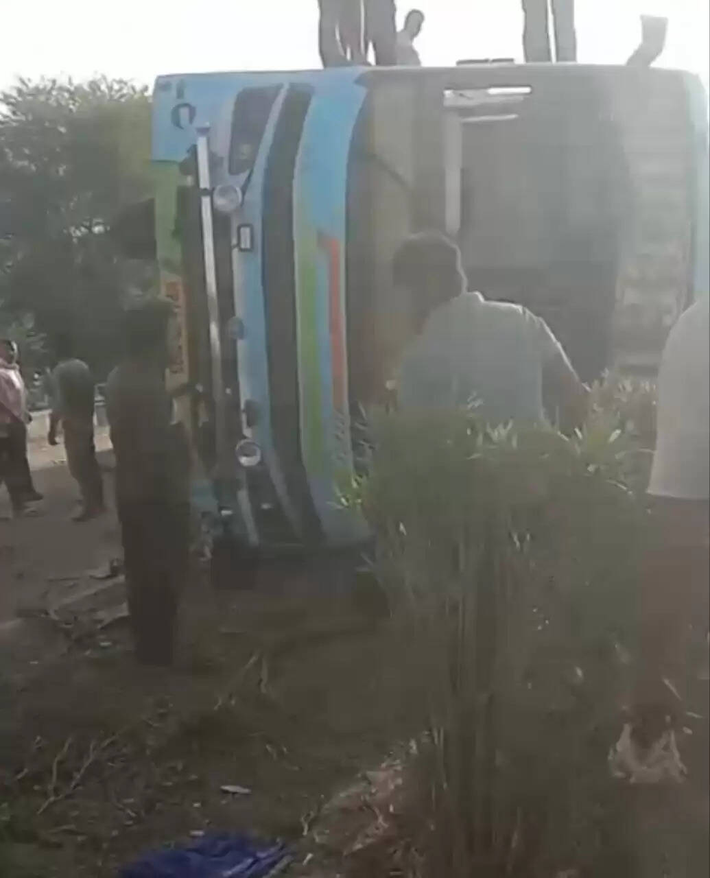 It is believed that the bus was overspeeding and, as a result, the driver lost control of the vehicle and it overturned near the Bhava bus stand.
