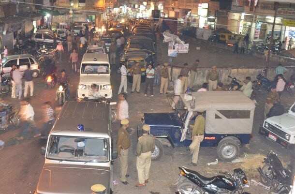 in photo: Police vehicles lined-up at Anjuman, Udaipur