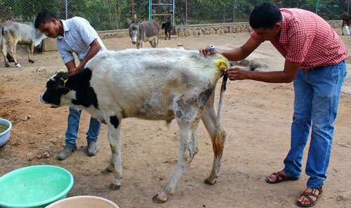 Sunil, a security guard was feeding cows and bulls as per his daily routine. He immediately notices one young bull calf with a wound near his tail. He looked closer to find out that it was a deep wound with maggots inside.