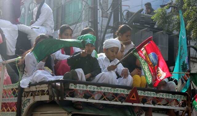 Dressed in the traditional attires, Muslim men and children were seen rejoicing and chanting the slogans in memory of Prophet Muhammad.