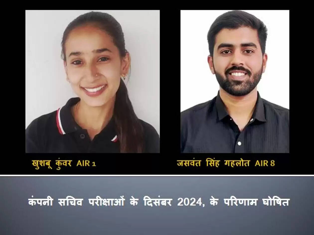 उदयपुर 25 फ़रवरी 2025। कंपनी सचिव परीक्षाओं व्यावसायिक कार्यक्रम (पाठ्यक्रम 2017 और 2022) और कार्यकारी कार्यक्रम (पाठ्यक्रम 2017 और 2022), दिसंबर, 2024 सत्र के लिए नई दिल्ली में घोषित किया गया है और सभी संबंधितों की जानकारी के लिए पूरे देश में संस्थान के सभी क्षेत्रीय और अध्याय कार्यालयों को जारी किया गया है।