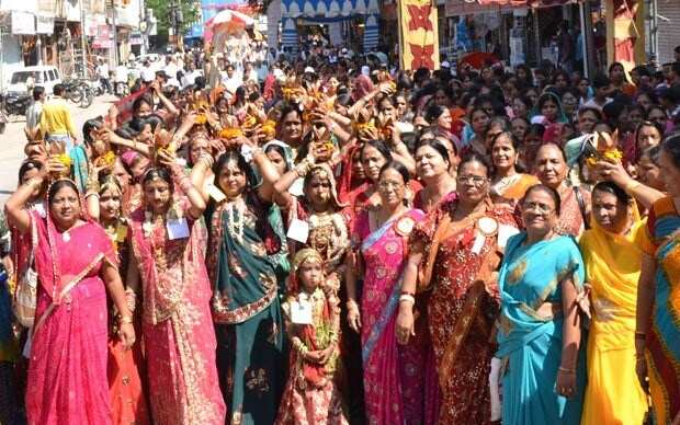 Procession started from Matul Kripa and passed through Agrawal Bazar, Asthal Chouraha, Jini ret, Lakhara Chowk, Dhan mandi, Dehli Gate, Bapu Bazaar, surajpol and concluded at Matul Kripa.