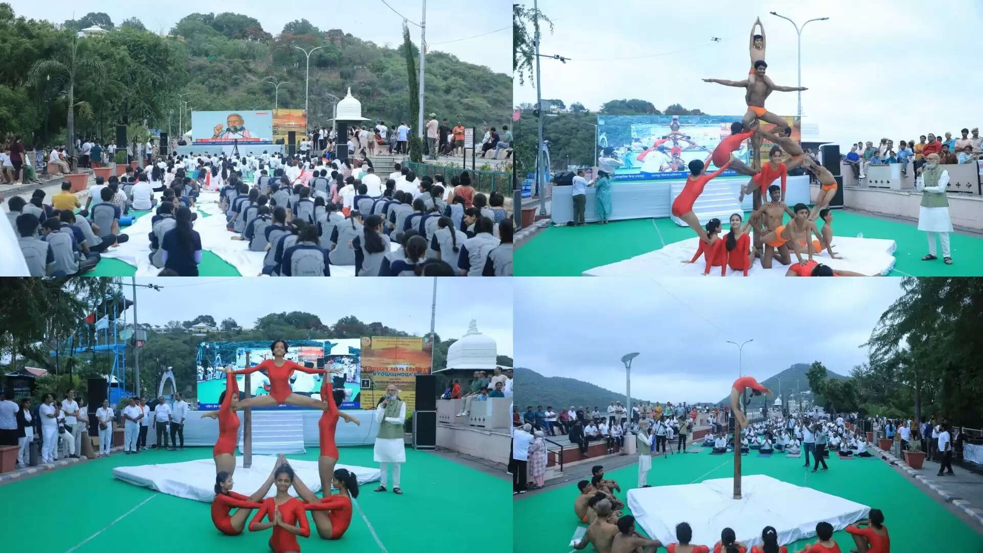 Udaipur, June 21, 2025 - On the occasion of International Yoga Day, a grand yoga event was organised this morning in Udaipur on the Fateh Sagar Pal. The chief guest of the event was Padma Shri Uday Deshpande.