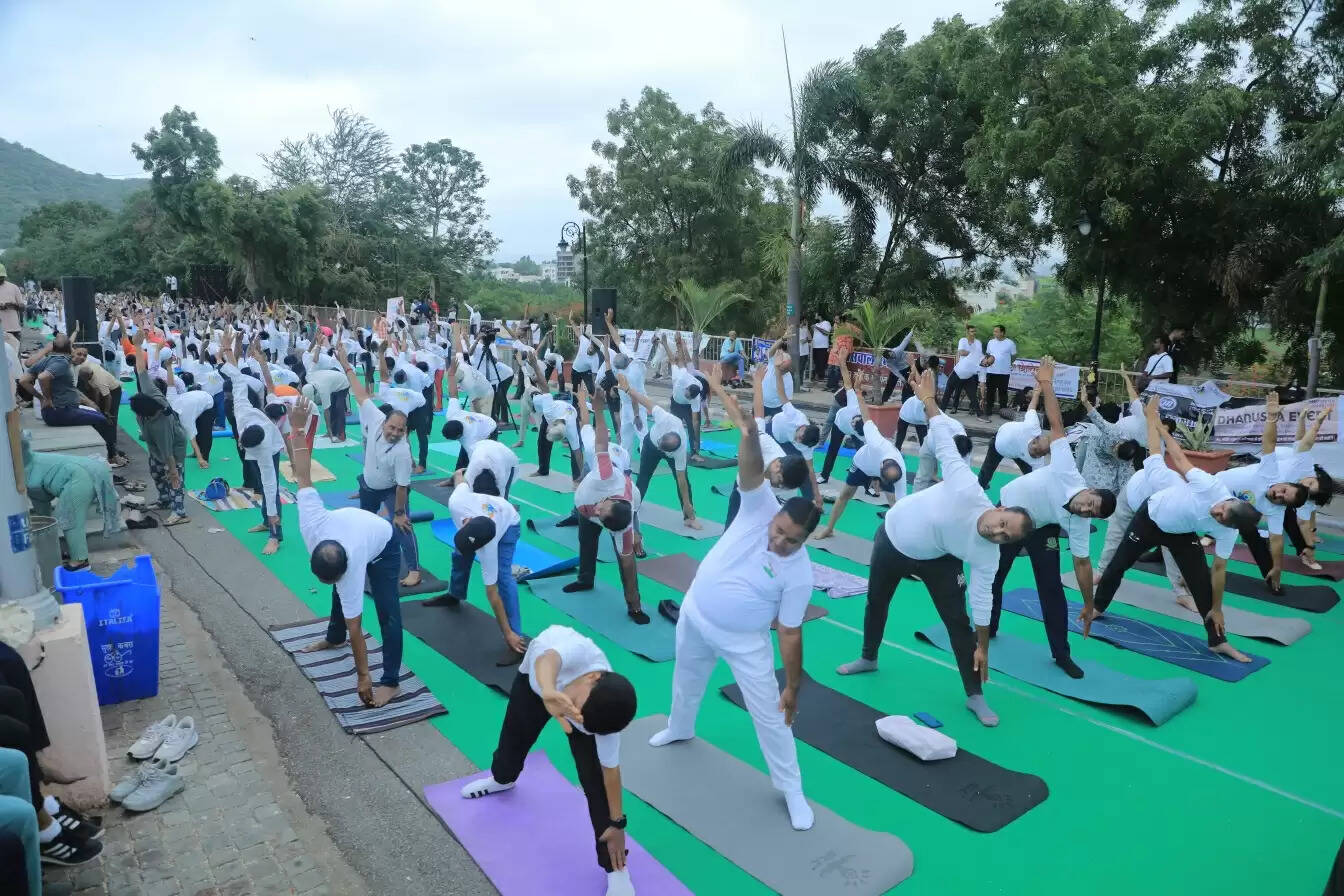 A live telecast of Prime Minister Narendra Modi’s address was broadcast next after which a structured yoga session was conducted. Led by chief yoga instructor Kiran Soni and assisted by Purva Maan, Monika Dashora, Pooja Sharma and Jayshree, the team guided the crowd through various yoga practices.At the conclusion of the event, Padma Shri Deshpande and international kayaking player Pratiti Vyas were honoured for their contributions.