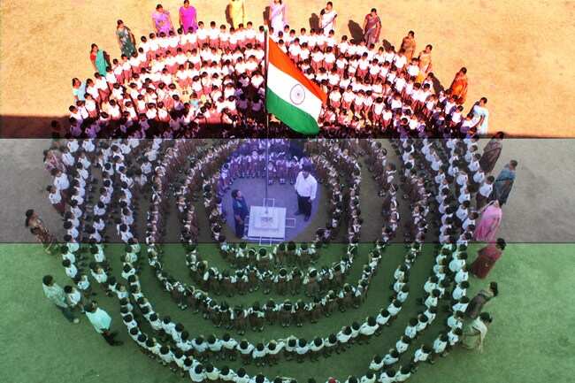 Students holding tricolor in hands were excited and filled with patriotism performed the national anthem ‘Jana-Gana-Mana’ together.