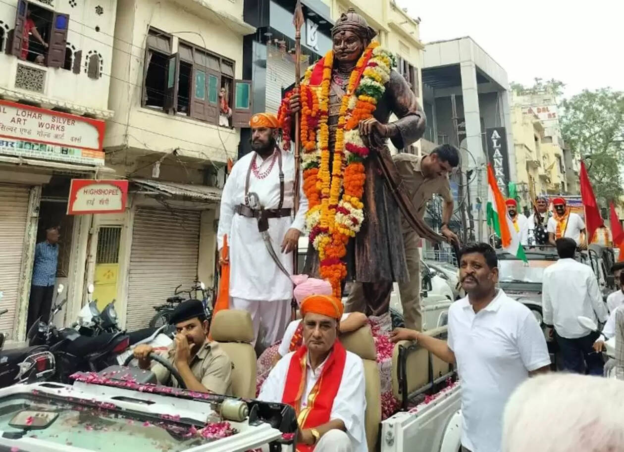 उदयपुर 29 मई 2025 । मेवाड़ क्षत्रिय महासभा संस्थान उदयपुर शहर नगर निगम के तत्वाधान में प्रातः स्मरणीय महाराणा प्रताप की 485 जन्म जयंती पर प्रातः मोती मंगरी स्थित महाराणा प्रताप की मूर्ति के समक्ष पूजा अर्चना आदि के उपरांत प्रातः 8:30 बजे चेतक सर्कल से शोभायात्रा प्रारंभ हुई जिसमें 25 झांकियां बैंड डीजे साउंड के साथ, सभी शहर के गणमान्य शोभायात्रा में चल रहे थे।