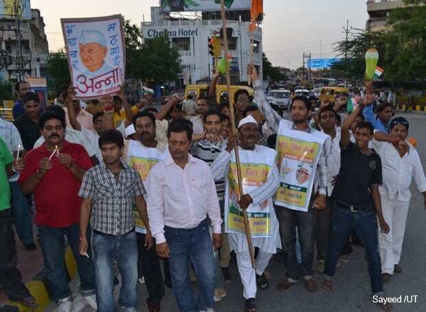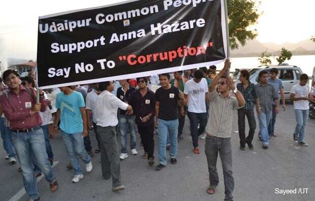 Continuously on the second day of Anna Hazare’s arrest, series of support and protest movements continues in Udaipur as well as in rest of India. Youth grouped themselves on facebook and twitter to plan out evening protest march and insist others to join them, many used mobile services like blackberry messengers and other web and phone applications to team up.