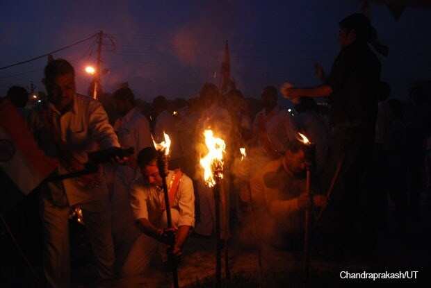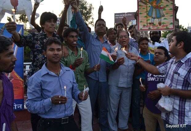 Early this evening, the group of Mewar Sindhu Brigade rallied with the torches which started from Shaheed Smarak Town Hall and moved to Delhi Gate in Anna’s support.