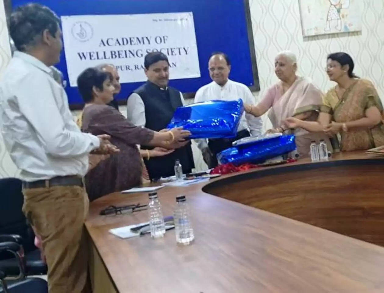 समारोह में प्रोफेसर कल्पना जैन ने अकादमी ऑफ वेल-बीइंग सोसाइटी द्वारा किए गए विभिन्न कार्यों की जानकारी प्रस्तुत की।