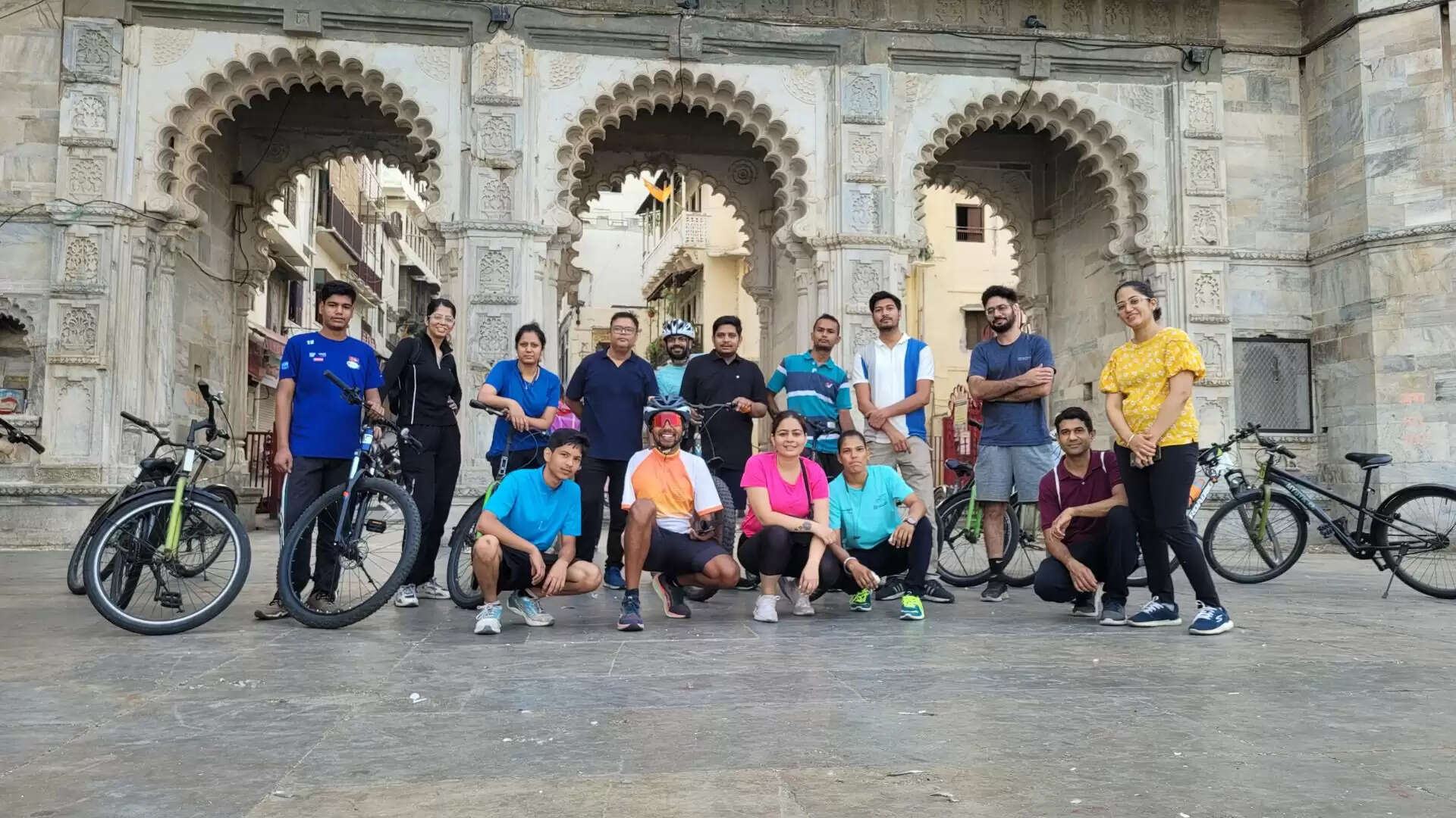 The rally started from Fateh Sagar lake and passed through Moti Magri, Ambamata, Chandpole and Gangaur Ghat, before returning to Fateh Sagar. Many people from different age groups joined the rally with great enthusiasm. Some came for fitness, while others came to enjoy the ride through the beautiful streets of the old city.