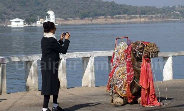 Rekha visited Lake Fateh Sagar at about 11am and enjoyed a camel ride. She was accompanied by a few people in Shree Ji’s Mercedes. Our UT Reporter Akhtar Khan is first to capture the exclusive moments Rekha had passed at Lake Fateh Sagar
