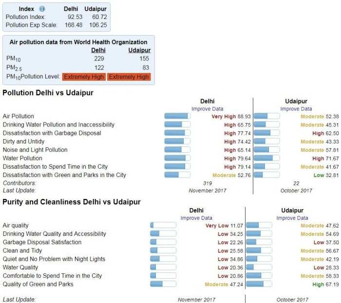 Here…lets compare Udaipur, the City of Lakes, Forests and Garden…to Delhi. ALARMING!!