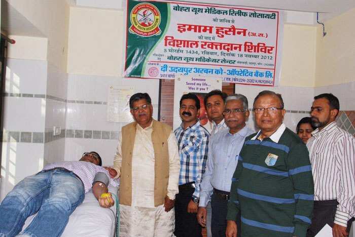 आज मोहर्रम माह की पांचवी तारीख पर बोहरा यूथ मेडिकल रिलिफ सोसायटी द्वारा कर्बला में शहीद हुए हजरत इमाम हुसैन और शहीदों की याद एक विशाल रक्तदान शिविर बोहरवाड़ी सिथत बोहरा यूथ मेडिकेयर सेन्टर पर आयोजित किया गया, जिसमें समुदाय के लोगो ने 188 यूनिट रक्तदान किया।