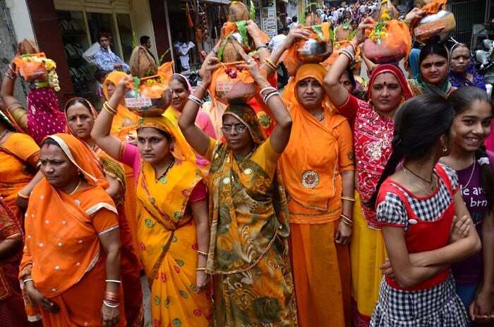 शोभायात्रा में पुरुषो के साथ -साथ महिलाओं ने भी हिस्सा लिया व जगह – जगह चल रहे बजरंग बली के भजनों पर झूमते नजर आए।