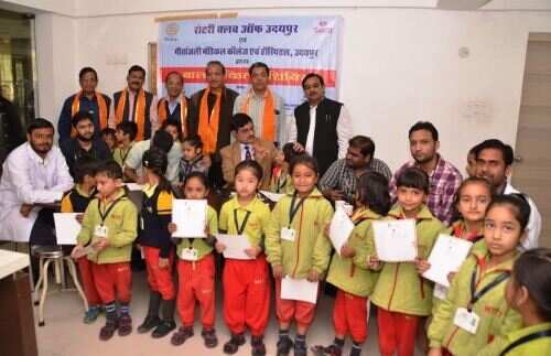 रोटरी क्लब उदयपुर, गीतांजली हॉस्पिटल एवं विट्टी इंटरनेशनल स्कूल के संयुक्त तत्वावधान में आज चिकित्सा शिविर का आयोजन किया गया जिसमेंकि चिकित्सा शिविर में गीतांजली हॉस्पिटल के डॉ. देवेन्द्र सरीन के अतिरिक्त डॉ. राजीव, डॉ. मुकेश, डॉ. हरतेश, डॉ. रजत, डॉ. हरमीत, डॉ. हितेश ने बच्चों की जांच कर उन्हें निःशुल्क उपचार मुहैया कराया।
