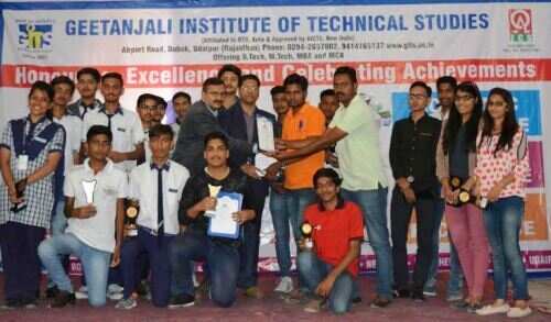 कार्यक्रम का आयोजन सांस्कृतिक, शैक्षणिक एवं खेलकुद में प्रतिभावान छात्र छात्राओ कों प्रोत्सहित करने हेतु गिट्स उदयपुर द्वारा आयोजित किया गया। समारोह के प्रारम्भ में गीट्स के राजीव माथुर ने स्वागत उदबोधन में कहा कि इस कार्यक्रम के आयोजन का मुख्य उद्देश्य उन प्रतिभावान छात्र छात्राओ को प्रोत्साहित करना है जों विभिन्न क्षेत्रों मे उत्कृष्ट है। गीतांजली ग्रुप के बारे मे बताते हुऐ उन्होने कहा कि गीतांजली ग्रुप के कई प्रतिष्ठान है। इस अवसर पर विवेक शर्मा ने कहा कि उन्होने बताया कि किस प्रकार के इन्जीनीयर को आज भी उच्च वेतन पर सस्थाएं नियुक्ती देने के लिए उत्सुक रहती है उनमे तीन योग्यताऐं को उन्होने प्रमुख बताया जिनमे पहला इन्जीनीयर का द्रष्टिकोण दुसरा उनकी त्वरीत अवलोकन शक्ति व तीसरा सवांद योग्यता मुख्य है साथ ही उन्होने तकनिकी शिक्षा मे जों भी कुछ अर्जन किया उसका प्रारूप व उपयोग की समझ मुख्य रूप से उन्हे नियुक्ती दिलाने मे सहायक सिद्ध होती है और इसी पर गीतांजली खास ध्सान देता है।