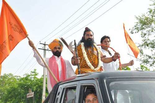 शोभायात्रा में सुसज्जित झांकिया, घोडे व वाहन चल रहे थे ।