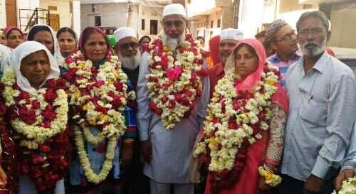 इस मौके पर समाज के लोगों ने खांजीपीर चौक में इकट्ठा हो कर यात्रियों को फूल मालायें पहना और गले लग कर विदा किया।