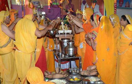 सेक्टर 11 स्थित आदिनाथ भवन में आदिनाथ चैरिटेबल ट्रस्ट द्वारा कार्तिक अष्टान्हिका पर्व पर आचार्य कनकनन्दी गुरूदेव ससंघ के सानिध्य में नौ दिवसीय सिद्धचक्र महामंडल विधान के सातवेें दिन बुधवार को प्रात: आदिनाथ भगवान, पाश्र्वनाथ भगवान का इन्द्र-इन्द्राणियों द्वारा महा मस्तकाभिषेक किया गया
