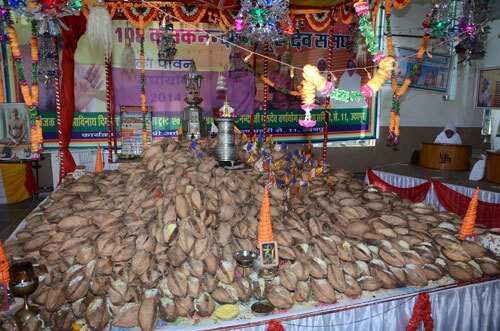 विधान मण्डप में बना श्रीफलों का पहाड़