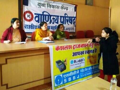 राजकीय मीरा कन्या महाविद्यालय में युवा विकास केंद्र एवं बैंकिंग एवं व्यावसायिक अर्थशास्त्र विभाग के संयुक्त तत्वावधान में वित्तीय साक्षरता के अन्तर्गत“धन का सदुपयोग, सरकार की विभिन्न वित्तीय योजनाओ के बारे मे जनसमान्य को जागरूकता प्रदान करना, केशलेस इकॉनमी ,वैकल्पिक हस्तांतरण व्यवस्था आदि विषयों पर कार्यशाला में हुई।