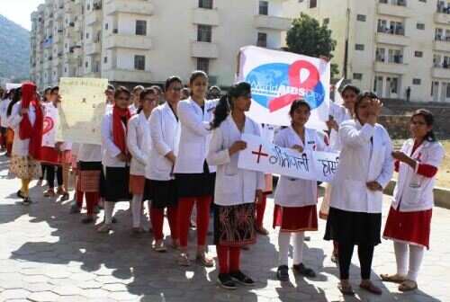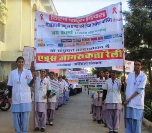 अर्न्तराष्ट्रीय एड्स दिवस पर गीतांजली कालेज एवं स्कूल ऑफ नर्सिंग के कम्युनिटी हेल्थ नर्सिंग विभाग के तत्वाधान में नर्सिंग छात्र-छात्राओं ने साकरोदा गाँव में रैली निकाल कर एड्स मुक्त उदयपुर, एड्स मुक्त राजस्थान का जन संदेष दिया।