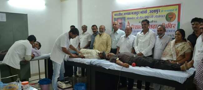 भारतीय जनता मजदुर महासंघ के प्रदेश महामंत्री कमलेन्द्र सिंह पंवार ने बताया कि भेरू सिंह शेखावत की जयंती पर BJMM के दवारा पहली बार रक्तदान शिविर का आयोजन किया गया।