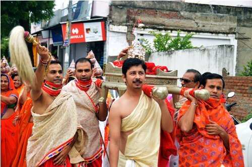 बैण्ड के पीछे आचार्य जिनदर्शन सुरीश्वर महाराज आदि ठाणा एवं उनके पीछे श्रावक धवल वस्त्रों में साथ चल रहे थे। पीछे-पीछे भगवान की सुरम्य पालकी श्रावक अपने कंधों पर उठाएं भगवान को नगर भ्रमण करा रहे थे। पालकी के पीछे साध्वीवृन्द एवं उनके पीछे रंग-बिरंगे वस्त्रों में सजी-धजी श्राविकाएं चल रही थी।