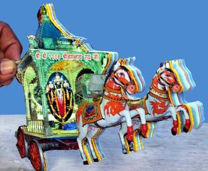 शहर के जाने-माने शिल्पकार चन्द्रपकाश चित्तौडा ने भगवान जगन्नाथ पर रथ नुमा पुस्तिका बनाई है। इस पुस्तिका में रथ, घोडे की सूक्ष्म औजारों से कटिंग करते हुए भगवान जगन्नाथ की तस्वीर को सुन्दर आकृति में बनाया है जो करीब 5 गुणा 8 इंच की है।