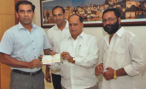 उदयपुर के नागौरी परिवार द्वारा पीड़ितजन सहायतार्थ संचय राशि में से 15 हजार का चैक सोमवार को जिला कलक्टर आशुतोष ए.टी.पेडणेकर को सौंपा।