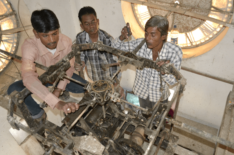 घड़ी को दुरुस्त कर रहे पेशेवर कारीगर ज़हीरुद्दीन सक्का, बाबु खांन और सलीम महोम्मद ने बताया कि “घंड़ी बनाना हमारा पुश्तेनी काम है, हमारे पूर्वजो ने मेवाड़ की सेवा की थी और आज जब हमे यह मौका मिला है तो हम ज़रूर कोशिश करेंगे की घंटाघर की यह घड़ी फिर से दुरुस्त हो जाये” सक्का ने बताया कि घड़ी के ब्रशिंग पार्ट्स पूरी तरह से घिस चुके है और यह बाजार में भी नही मिलते, इन पार्ट को उन्हें ही बनाना पड़ेगा, सक्का ने बताया कि उदयपुर में तीन घड़ियाँ लगी है, जिनमे घंटाघर व बड़ी में टी बी अस्पताल के पास लगी घंडी में 24 घंटे की चाबी भरी जाती है, तथा सूरजपोल की घड़ी में 8 दिन तक की चाबी भरी जाती है।