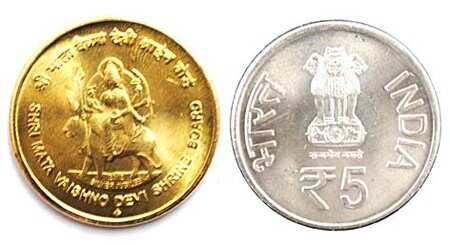 भारत सरकार ने श्री वैष्णो देवी पर पांच रूपये का सिक्का जारी किया है। उक्त सिक्का माता वैष्णो देवी श्राईन बोर्ड की रजत जयंती के अवसर पर जारी किया गया है।
