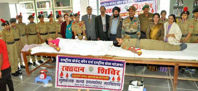 गुरू नानक कन्या स्नातकोत्तर महाविद्यालय की एन.एस.एस एंव एन.सी.सी व लोकमित्र ब्लड बैंक के संयुक्त प्रयासों से सोमवार को महाविद्यालयी छात्राओं ने रक्तदान व रक्त जांच करवाई।