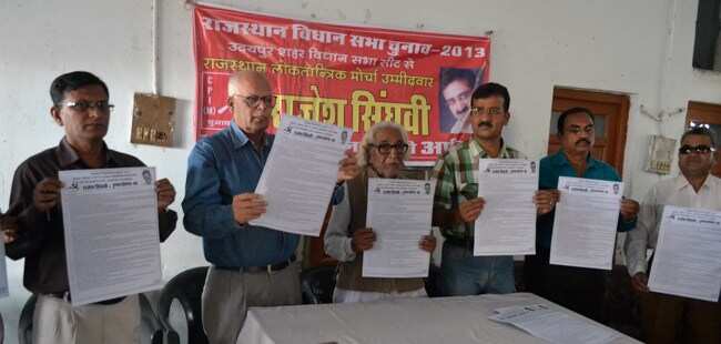 राज्य में विधानसभा चुनाव को देखते हुए राजस्थान लोकत्रंतिक मोर्चा समर्थित मार्क्सवादी कम्युनिस्ट पार्टी की ओर से आज चुनाव घोषणा पत्र जारी किया गया।