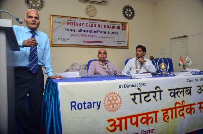 इस अवसर पर क्लब अध्यक्ष डॉ. बी.एल.सिरोया ने बताया कि 25 सितम्बर से 2 अक्टूबर तक रोटरी क्लब उदयपुर द्वारा रोटरी बजाज भवन में डी.पी.धाकड़ के नेतृत्व में आठ दिवसीय गरबा का आयोजन होगा। सचिव डॉ.नरेन्द्र धींग ने सचिवीय जानकारी दी। प्रारम्भ में श्रीमती सुषमा गोयल ने ईश वंदना प्रस्तुत की।
