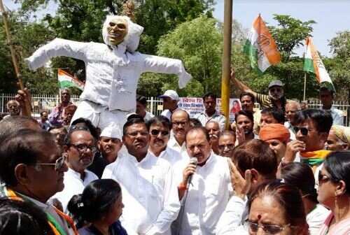 पेट्रोल पानी और बिजली के बढ़ते दामों को लेकर कांग्रेस का विरोध प्रदर्शन