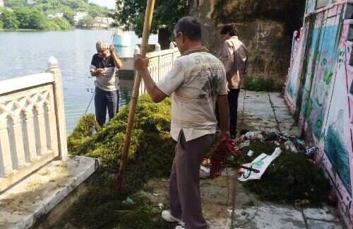 पिछोला के अमरकुंड क्षेत्र से झील मित्र संस्थान,झील संरक्षण समिति,मोहन सिंह मेहता मेमोरियल ट्रस्ट एवम् गांधी मानव कल्याण सोसायटी के सयुक्त तत्वावधान में आयोजित श्रमदान में बड़ी मात्रा में जलीय खरपतवार, पॉलीथिन, शराब पानी की बोतले, मांस अवशेष व सड़ी गली घरेलु सामग्री निकाली गई।