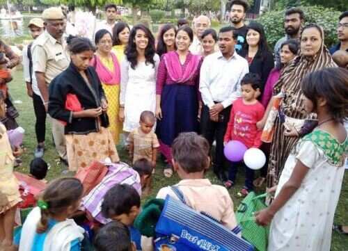 बेलून बेचने वाले बच्चों को जिला कलक्टर ने बांटे गिफ्ट-किट