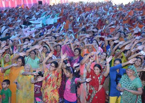 महिला- पुरूष श्रद्धलुों ने अपनी जगहों पर खड़े होकर हाथ ऊपर उठाकर भगवान और गुरूदेव से आशीर्वाद ग्रहण कर अपनी श्रद्धा और भक्ति भाव को प्रकट किया।