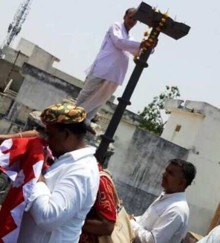 लक्ष्मीनारायण मंदिर पर ध्वजा चढा पाटोत्सव मनाया
