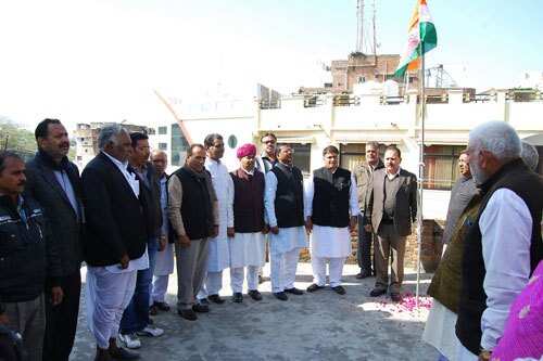 भारतीय राष्ट्रीय कांग्रेस की स्थापना के 130 वीं सालगिरह पर उदयपुर देहात जिला कमेटी के कार्यालय पर पार्टी का ध्वजारोहण जिलाध्यक्ष लालसिंह झाला ने किया।