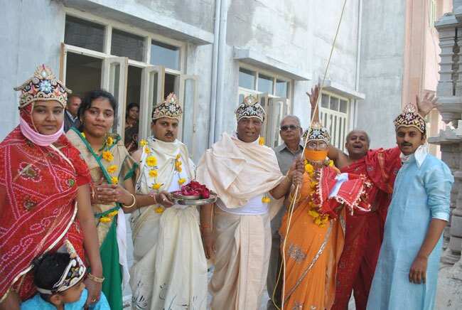 संघ के अध्यक्ष सुशील बांठिया ने बताया कि ध्वजारोहण से पूर्व लाभार्थी बांठिया परिवार के सदस्य सहित अनेक महिला-पुरूष हाथों में ध्वजा लिये तीन बार मन्दिर की परिक्रमा की।