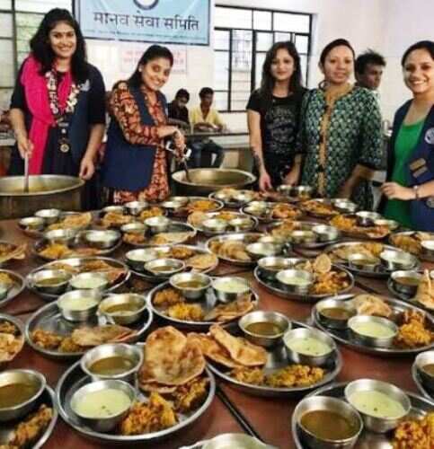 लेकसिटी लेडिज सर्किल- परिचारकों को घर का खाना खिलाती सदस्याएं