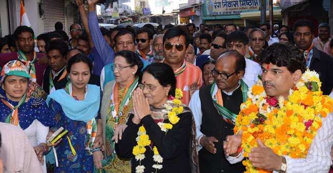 कांग्रेस प्रत्याक्षी श्रीमाली के साथ गिरिजा व्यास ने किया जनसंपर्क