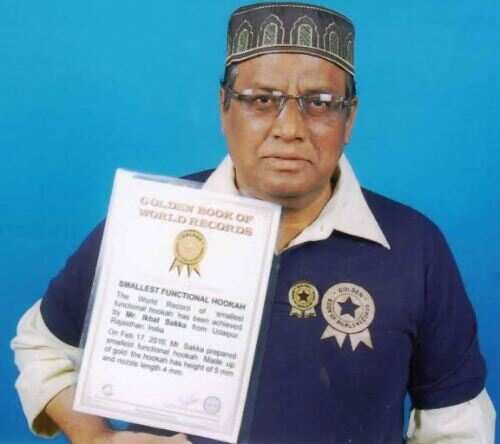 उदयपुर के अन्तर्राष्ट्रीय सूक्ष्म हस्तशिल्पी इकबाल सक्का द्वारा निर्मित विश्व का सबसे छोटा सोने का पारम्पारिक हुक्का गोल्डन बुक ऑफ वर्ल्ड रिकॉर्ड्स में दर्ज हुआ।