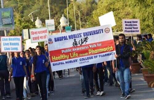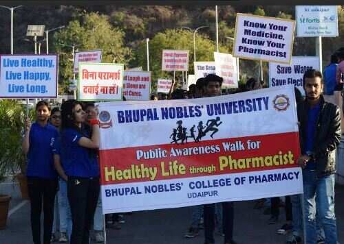भूपाल नोबल्स फार्मेसी कॉलेज के छात्र एवं छात्राओं ने नुक्कड़ नाटक का मंचन किया जिसमे आम जन को अपने स्वास्थ्य के प्रति जागरुक रहते हुए आह्वान किया कि कोई भी दवा स्वनिर्णय से नही लेवे अपितु फार्मासिस्ट या चिकित्सक की सलाह के बाद ही लेवें। विधार्थीयों ने इस नाटक के माध्यम से स्वस्थ समाज एवं स्वच्छ भारत का निर्माण के नारे को बुलन्द किया, कार्यक्रम मे शहर के गणमान्य लोगो ने भी बढ-चढकर हिस्सा लिया । अन्त मे कार्यक्रम समापन के अवसर पर आकाश प्रकाशमय हो उठा जब उक्त सन्देश देते हुए प्रकाश पतंगे आसमान मे उडाई गई।