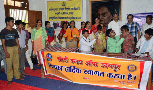 रोटरी क्लब उदयपुर, इनरव्हील क्लब एवं गीताजंली मेडिकल कॉलेज के संयुक्त तत्वावधान में आज बेदला स्थित विद्या मां महिला भारती सामुदायिक केन्द्र में स्वास्थ्य परीक्षण शिविर आयोजित किया गया।
