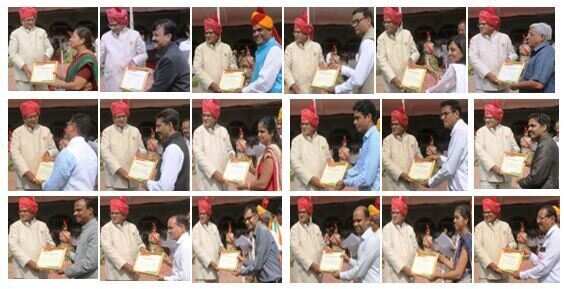 इस अवसर पर सरकारी एवं’ गैर सरकारी सेवा में अपना उत्कृष्ट कार्य करने वालो को समारोह में सम्मानित किया गया। पुरस्कृत होने वालों में संभागीय आयुक्त कार्यालय से संयुक्त निदेशक डॉ. अर्चना रांका, जिला परिषद के अधिशाषी अभियंता हकीमुद्दीन ताज, पंचायत समिति बड़गांव, वाणिज्य कर सहायक आयुक्त संजय कुमार विजय एवं श्रीमती नीतू भारद्वाज, वाणिज्यिक कर अधिकारी रवीन्द्र जैन एवं मनीष बक्षी, नगर निगम के स्वास्थ्य अधिकारी हिम्मत सिंह पंवार, कस्तूरबा विद्यालय नांदेशमा की प्रधानाध्यापक संजू त्रिपाठी, टीएडी के सहायक लेखाधिकारी संदीप कुमार लाटा, सराड़ा के कृषि सहायक अभियंता राहुल गुप्ता, एयरपोर्ट अधीक्षक सतेन्द्र यादव, एसआईईआरटी व्याख्याता डॉ. जगदीश कुमावत, भू अभिलेख निरीक्षक बड़गांव नंदलाल जोशी, कानपुर राउमावि के वरिष्ठ अध्यापक नरेन्द्र यादव, नारायण सेवा आवासीय विद्यालय के विशेष अध्यापक नीरज अग्रवाल, सेमारी के जलग्रहण कनिष्ठ अभियंता श्रीमती चेतना राजपूत, आकाशवाणी के वरिष्ठ उद्घोषक राजेन्द्र सेन, मदर मिल्क बैंक डोनर नर्स श्रीमती मनोरमा दरांगी